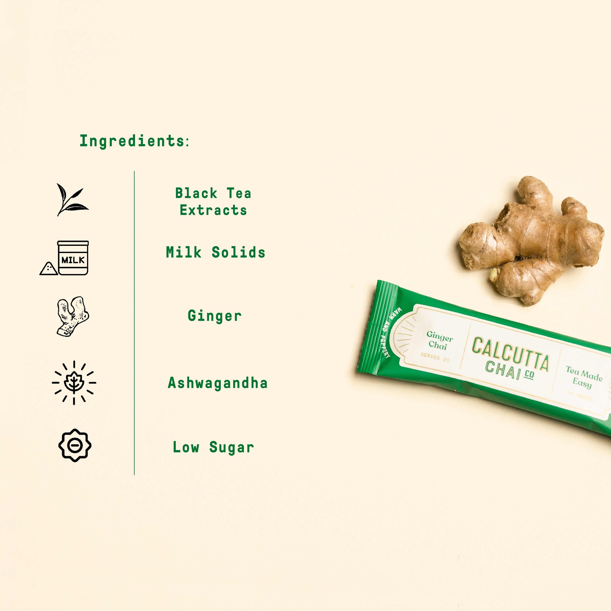 Brew yourself an utterly refreshing cup of chai, brimming with the warm flavours of ginger. Made from 100% Assam Tea Extracts, our instant tea premixes are packed with the goodness of Himalayan Ashwagandha & freshly-ground whole spices from the Malabar Coast.