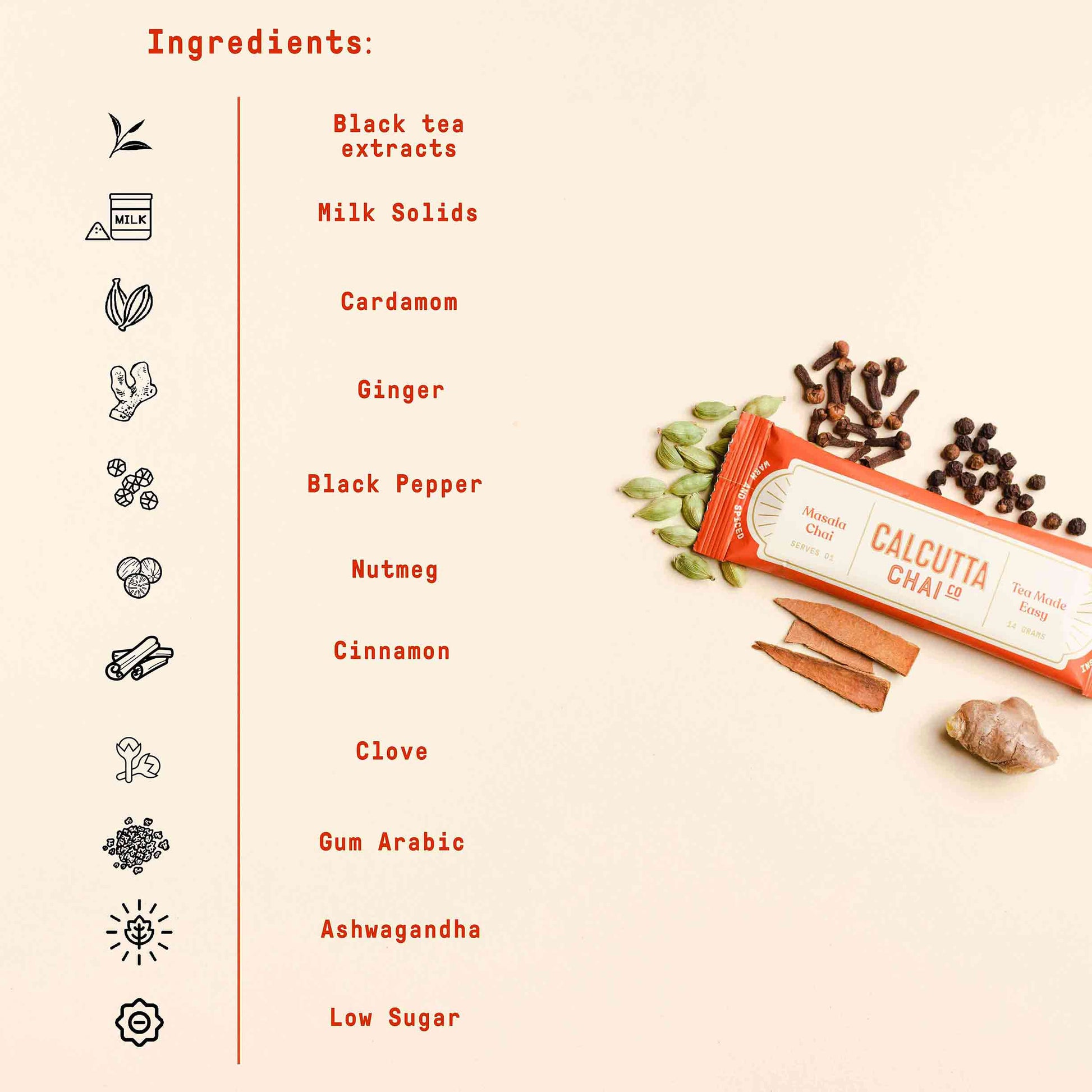 Enjoy a stirring cup of hot chai, packed with the warmth of home. Made from 100% Assam Tea Extracts, our instant tea premixes are brimming with the goodness of Himalayan Ashwagandha & freshly-ground whole spices from the Malabar Coast.