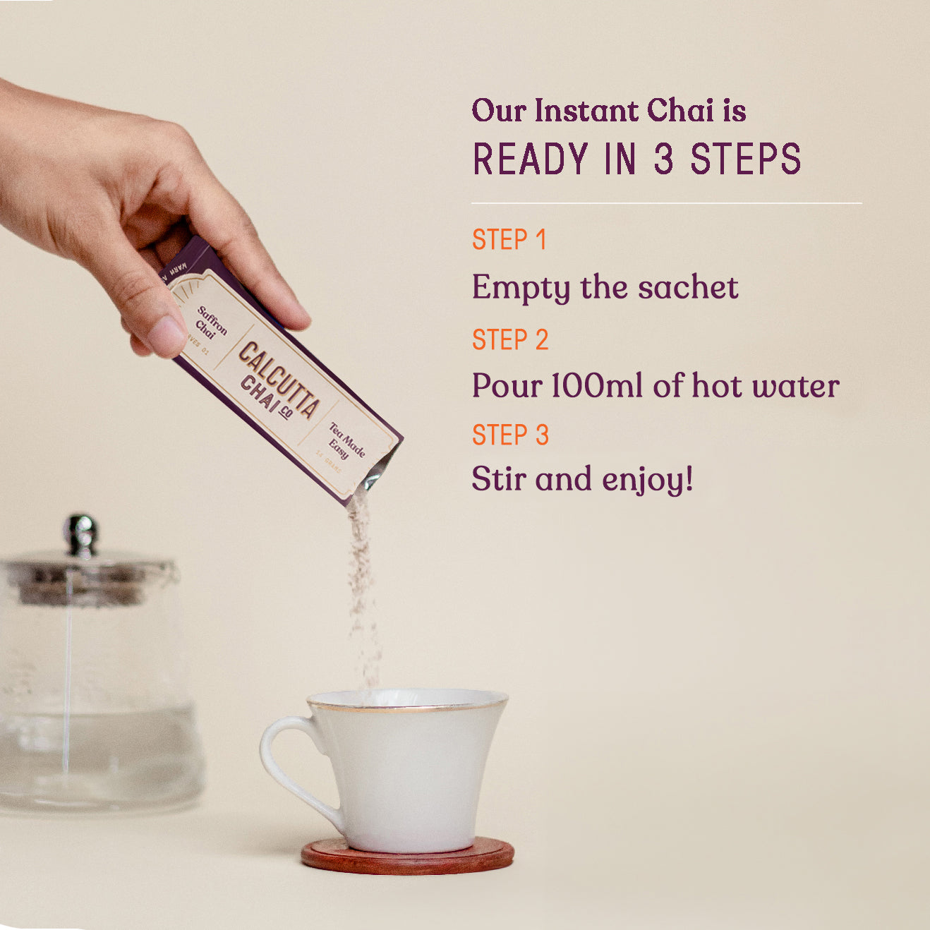 Each sachet is perfect for 1 cup of chai. Add one sachet of chai to 100ml of hot water for the perfect cup.