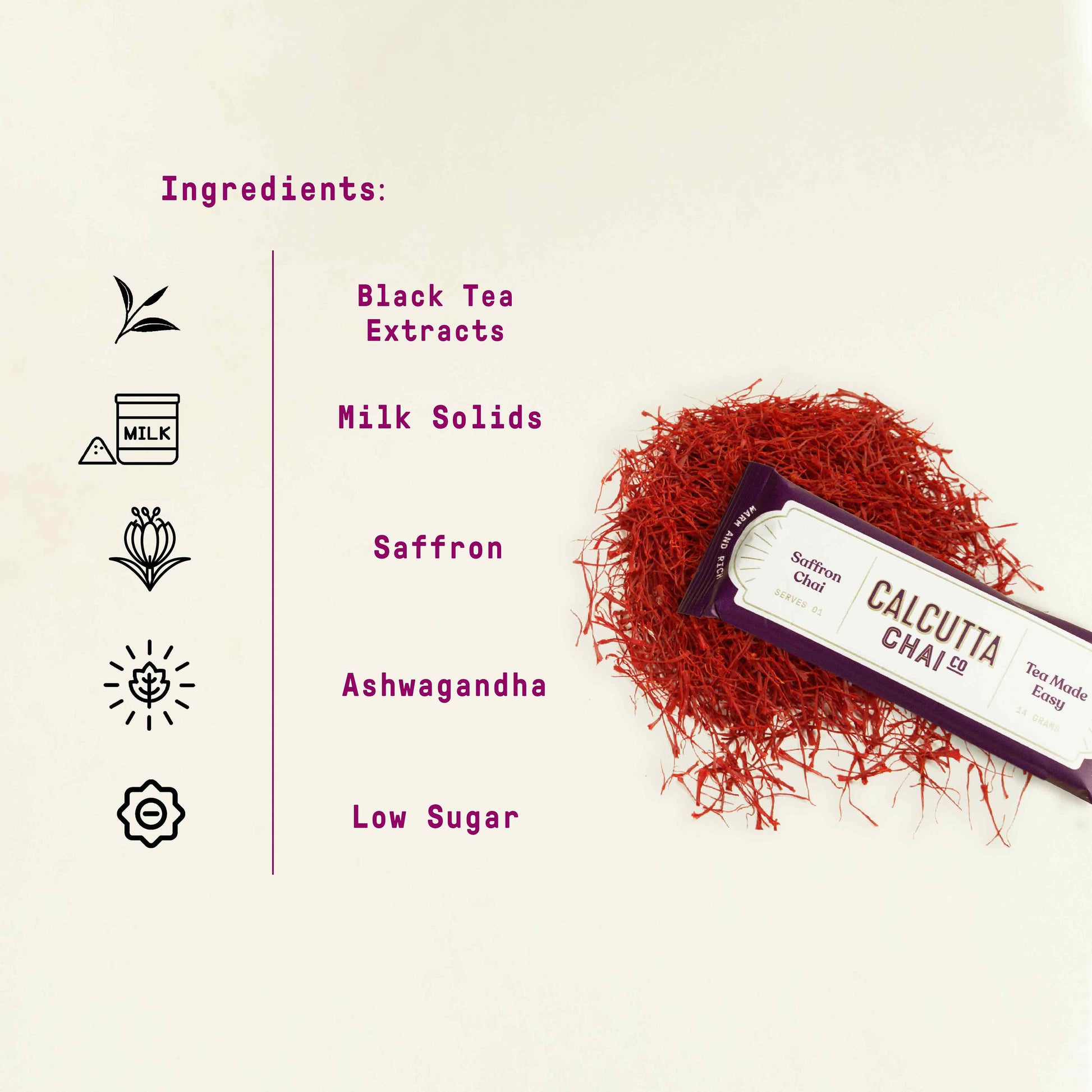 Kickstart your day with a fragrant cup of hot chai, brimming with rich saffron flavours. Made from 100% Assam Tea Extracts, our instant tea premixes are packed with the goodness of Himalayan Ashwagandha & premium Saffron extracts from the valleys of Kashmir.